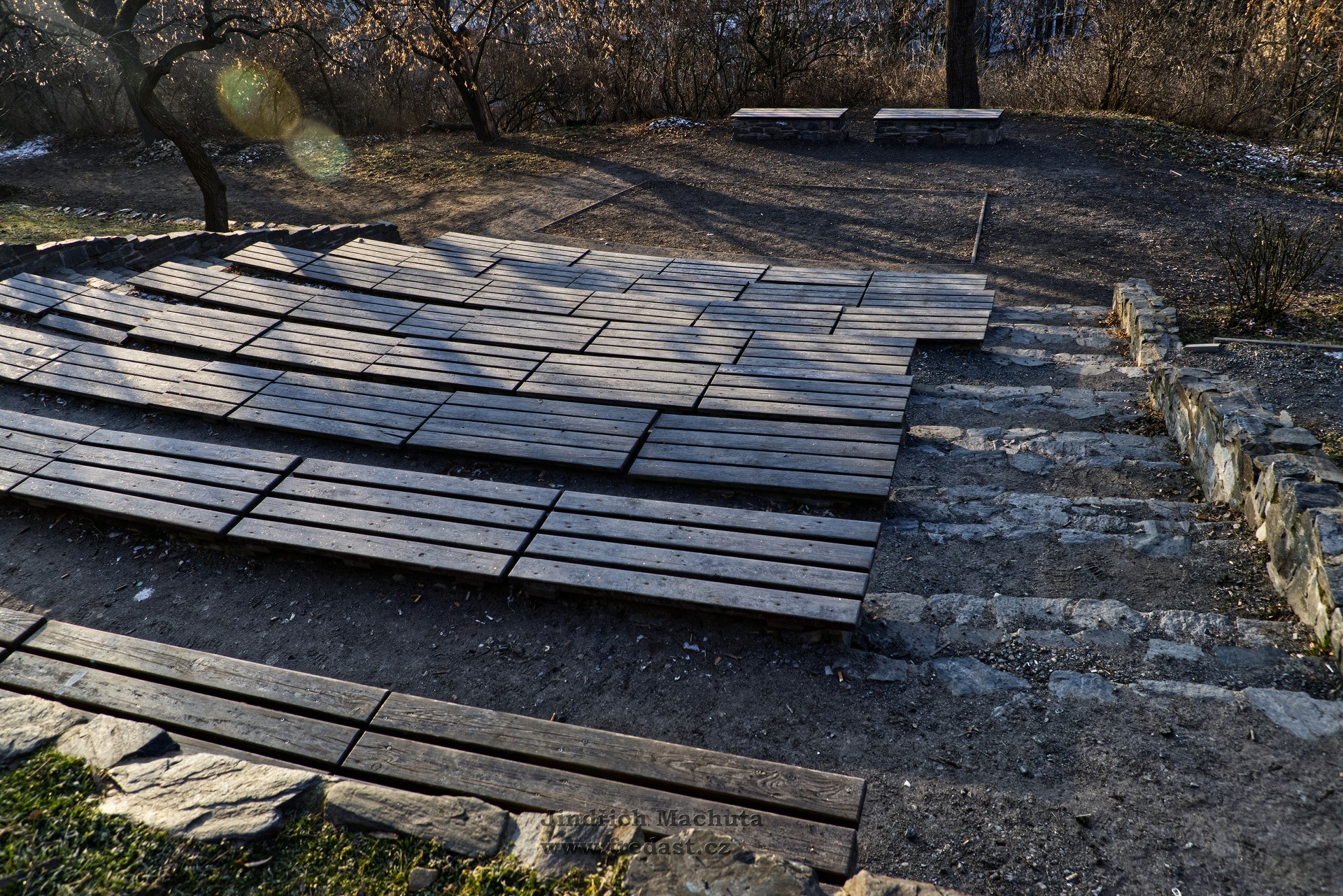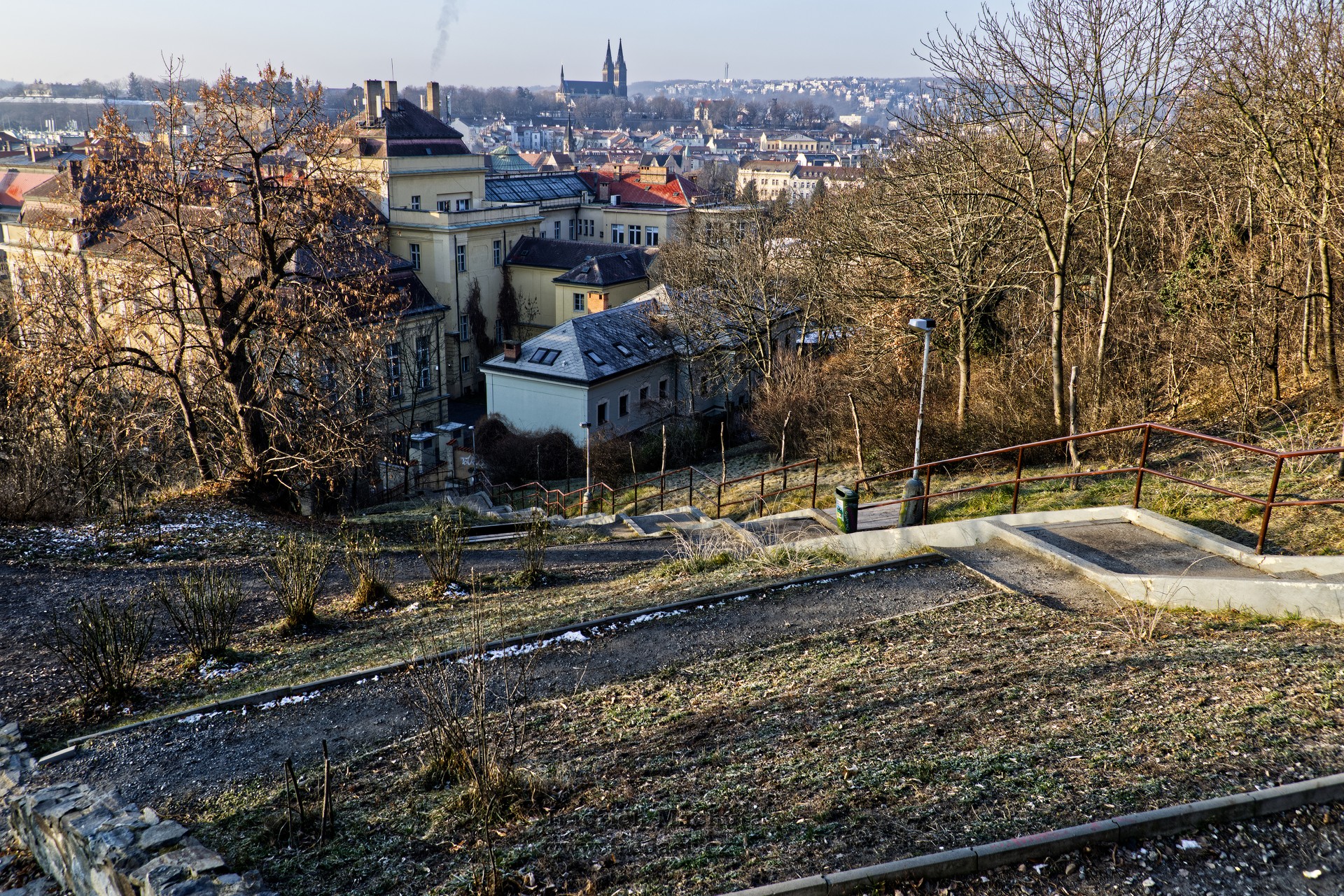 V místě vstupu do parku, nedaleko tenisového hřiště a kostela, je také výhled na celý Albertov a Vyšehrad. Park je stupňovitě uspořádaný, u schodiště jsou lavičky k odpočinku. Park je sporadicky udržován, rostou zde převážně starší ovocné stromy a listnaté keře. Mapa viz.ZDE.